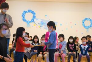 4月10日に入園・進級式を行いました。 新しいクラスでの初めての行事です。 うみ組(2歳児)、もり組(3歳児)、そら組(4歳児)、にじ組(5歳児)が参加し、新入園児と園児代表が賞状を受け取りました。 新しい環境にまだにま…[続きを読む]