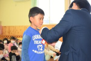 4月10日に入園・進級式を行いました。 新しいクラスでの初めての行事です。 うみ組(2歳児)、もり組(3歳児)、そら組(4歳児)、にじ組(5歳児)が参加し、新入園児と園児代表が賞状を受け取りました。 新しい環境にまだにま…[続きを読む]