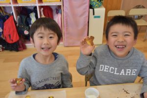 今年もきれいな桜が咲きました! にじ組 5歳児 そら組 4歳児 せんべい食い競争をしました! もり組 3歳児 うみ組 2歳児 おひさま組 1歳児 ほし組 0歳児 こども園えがおの前にある中央公園へ出かけ、満開の桜の下で園…[続きを読む]